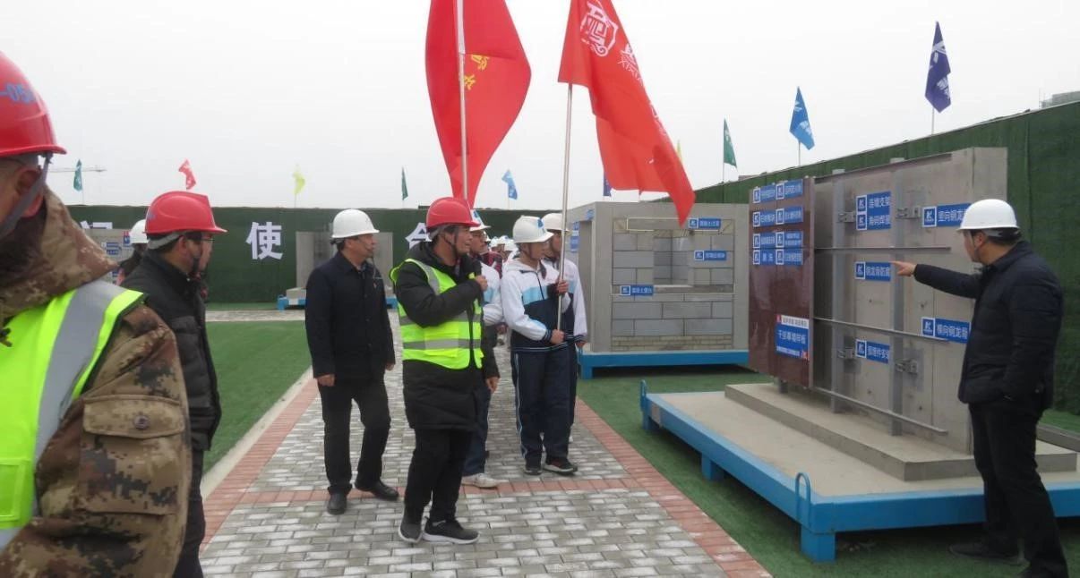 随后大家来到质量样板展示区及安全生产体验区进行观摩、体验,在质量样板展示区,详细讲解了我公司质量管理标准化施工及样板引路的质量管理理念,重点介绍了我公司在BIM技术应用、新技术新工艺应用、安全文明及绿色施工等方面的精细化管理以及取得的成绩,表示公司将继续以高质量、高品质、高效率完成息县高级中学建设工作的决心。
